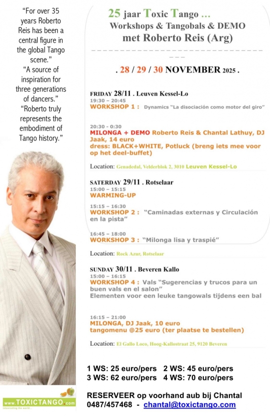 💥🔥🚀 25 jaar Toxic Tango … Workshops & Tangobal+DEMO met ROBERTO REIS (Arg) 28/29/30 nov 2025 |